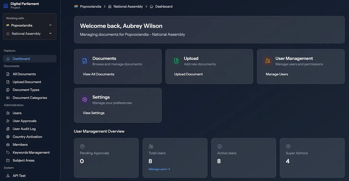 In year one of the Digital Parliaments Project, we focused on building a strong foundation: understanding parliaments’ real needs and priorities, exploring the capabilities of emerging technology to solve modernization challenges, and partnering with countries to make real, material progress. In year two, we will build on that foundation with a growing suite of capabilities and expanded access to ParlLink.