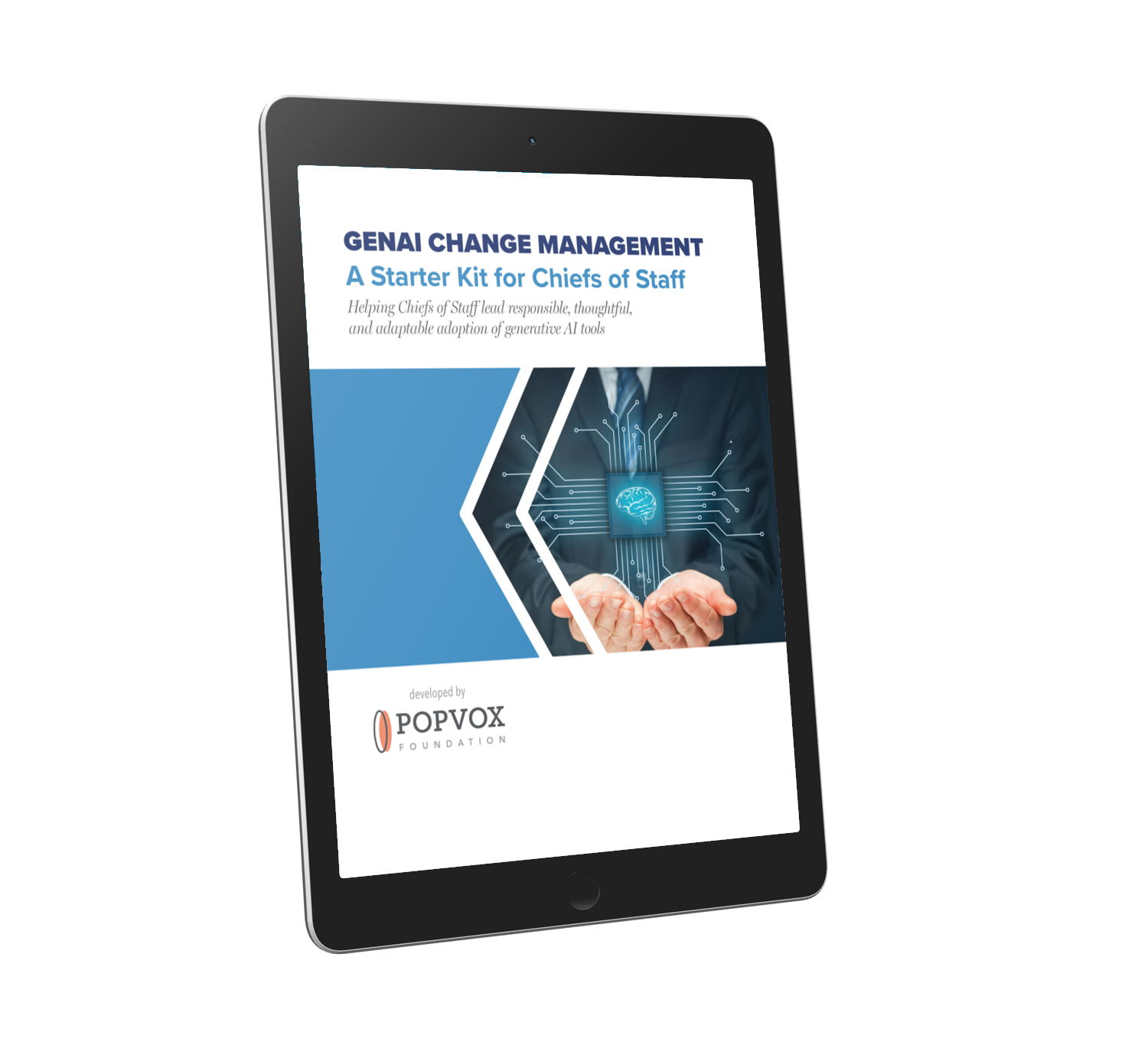 Leading your staff’s innovative and safe adoption of this emerging technology requires strategy and intention, which is why we've developed the GenAI Change Management Starter Kit for Chiefs of Staff. This resource recognizes the unique challenges facing Congressional leadership: limited time, varying comfort levels with new technology, and the high stakes of public service.