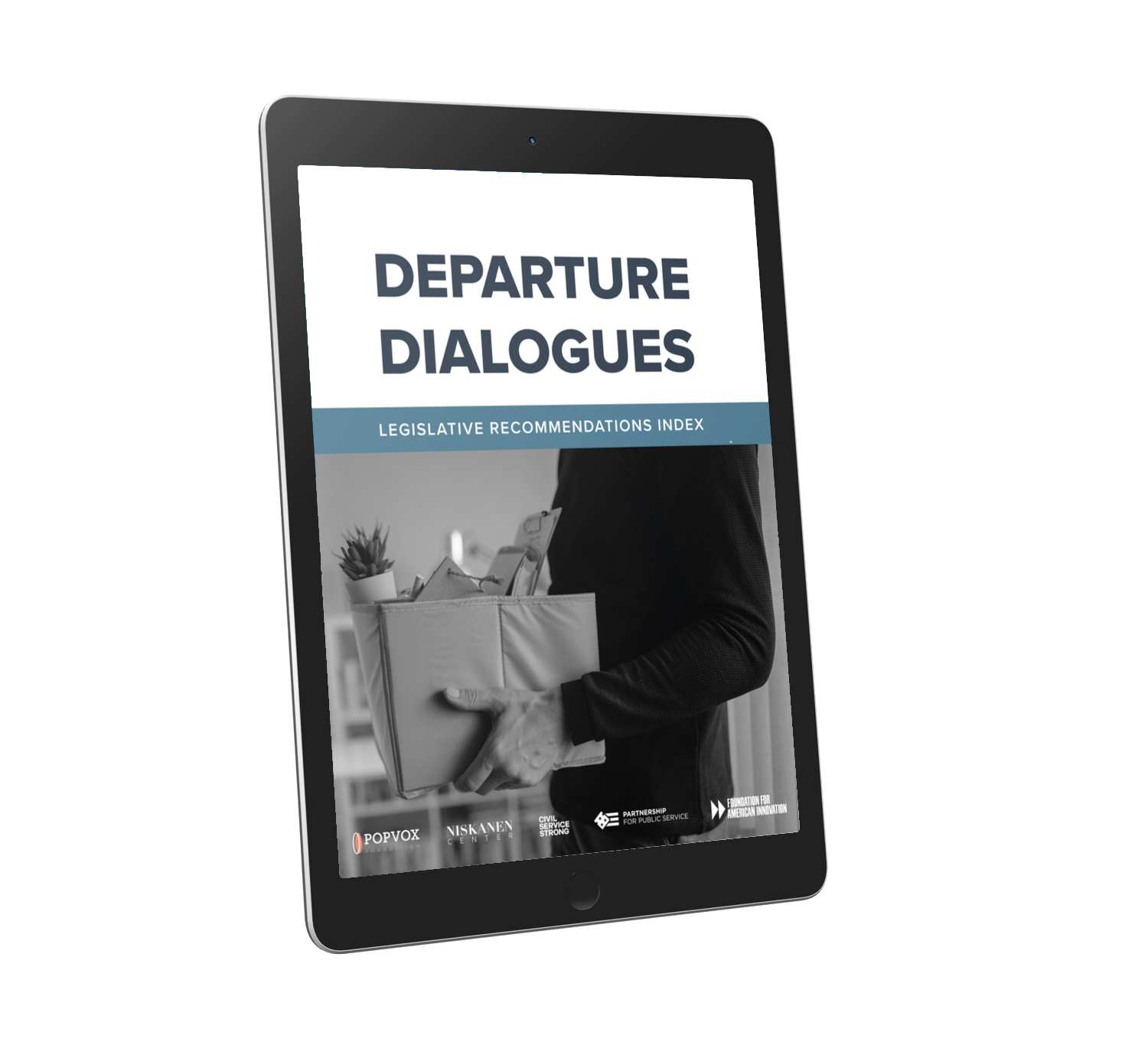 An important note: The recommendations compiled here reflect the individual views and experiences of interview participants. They are not endorsed by POPVOX Foundation, the Partnership for Public Service, the Niskanen Center, the Foundation for American Innovation, Civil Service Strong, or any other organization involved in the Departure Dialogues project.